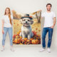 Bichon Frise In Autumn Leaves Thanksgiving Art Fleece Blanket
