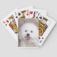Add more fun to your card games with this deck of playing cards featuring a smiling Bichon Frise.