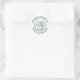 Cute bookplate, label sticker featuring a cartoon Bichon Frise puppy dog standing inside a mint circle. Above and below are templates to add your own text or message.