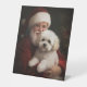 Bichon Frise with Santa Claus Festive Christmas Pedestal Sign
