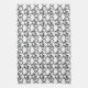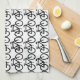 This kitchen towel features a contemporary design of an abstract pattern of repeating black bicycles on a white background.