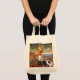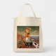 The printing came out very well, better than I had anticipated. The natural color fabric is sturdy with strong seams and comfortable handles. This tote fits easily over my shoulder. As it is filled, the bottom flattens out--very cool! I would buy this product again. This grocery tote holds a lot of groceries! The image quality was very good. The colors were a little darker than I had expected. The darkness may have been due to printing on a natural color fabric rather than on white. The cat design is attractively centered on the tote. The spirit of the design is very lively, just as it appears on the Zazzle website.