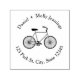 A self inking address stamp featuring an illustration of a bicycle at centre.