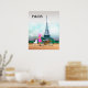 Young girl with a poodle gazes at the Eiffel Tower.