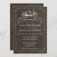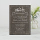 Rustic Wood-look Wedding Invitations. Tandem bicycle built for 2 with vintage curly ornaments and scroll frame. Casual handwritten retro chalk typography makes it perfect for rustic farm or country estate weddings, but with a few changes you can create an entirely different appearance suitable for traditional or modern weddings with a touch of sophisticated charm for the contemporary bride and groom. Easy to use versatile template can be modified for formal or semi-formal weddings. Click Customise It to change the type style, colours, and size of fonts. Please contact us for help with customisation, or if you need additional room for your wedding details.