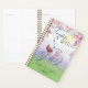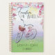 Colourful planner for bike enthusiasts that is easily personalised! Beautiful messaging reads: "Freedom on Wheels" in a decorative font with a lovely depiction of a pink bike with a basket sitting out in a field on a beautiful day with flowers framing the top and fallen pink petals at the bottom by the wheels. Personalise the text at the bottom to add your name or anything else you desire. On the back we have the same design, less the bike but we made it look like dusk with the moon instead of the sun for a very cool presentation overall!