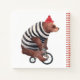 This design features a watercolor illustration of a bear on a bicycle wearing a striped sweater and red hat.