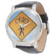 This watch featuring a combination of a bicycle & pedestrian on a road sign is perfect for anyone seeking an item that is unique & one of a kind.