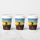 Teenage boy's personalised birthday party paper cup, with bicycle rider graphic and a sunset background. Add your person's name and age at the prompt! From HAMbyWhiteGlove aka HAMbWG