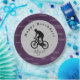 Teenage boy's personalised birthday plate, with bicycle rider. Background is grey with any other colour (shown here with amethyst). Add your child's name at the prompt! From HAMbyWhiteGlove aka HAMbWG