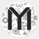 sticker with drawing of cyclist components, parts and accessories. ( bezel / helmet / padlock / counter / pedals / dresses / keys / tools / multitools / saddle / fork / pignon / gloves / lights / chain / pedal / gourde ). Meny Bikes Logo.