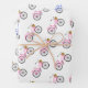 Bicycle Vacation Fun Pink White Blue Preppy Wrapping Paper Sheet