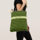 Enter your own text to personalise, or use the suggested punning "WHEEL LIFE". The design has an all-over repeating pattern (on the front and back of the bag); bicycle wheels in green and yellow colours on a black background.