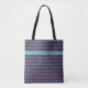 The design for this smart tote bag has an all-over repeating pattern (on both the front and back of the bag). It is made from bicycle wheels in pink and blue colours on a black background. You can enter your own text to personalise it, or use the suggested punning slogan "A WHEELY USEFUL BAG".