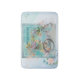A beautiful spattered polychromatic water coloured bicycle with flower baskets on blue burlap rimmed with white filigree, and with a greenish grey and white textured border around the blue burlap. Image credits: Pixabay.com – Image# 2416366, Image# 489879, Image# 2148492, Image# 1064162