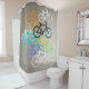 A decorative colourful bicycle abstract against a soft shaded beige background.