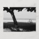 Postcard with black and white photography showing a bicycle on a beach. Taken at Sanur Beach on Bali Island.
