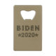 An amazing bottle opener, Biden 2020 is displayed using Camouflage letters. There are camouflage stars on each side of the 2020 font. Add photos, text, etc to the design. Order yours today!