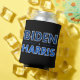 Joe Biden and Kamala Harris Democrat candidates for president and Vice President of the United States of America in the 2020 general election. Can cooler for soda, beer or seltzer in black, white and shades of blue.