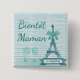 Bientôt Maman Baby Shower Button Mummy to be, with teal Eiffel Tower background with little baby footprints and bow