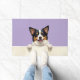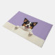 The soft lilac purple background adds a gentle and stylish touch, perfect for modern home decor. With extra space at the top and bottom, this design is ideal for personalization—add names, welcome messages, or custom text to create a unique dog-themed doormat or thoughtful gift.