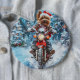 Biewer Terrier Dog Riding Motorcycle Christmas 6 Cm Round Badge