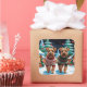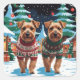 This festive design captures the joyful spirit of the holiday season, featuring an adorable dogs.Nestled in a winter wonderland, complete with a decorated Christmas tree, and beautifully wrapped presents. Snowflakes gently fall, adding a magical touch to the scene, while the vibrant colours of the holiday decorations create a warm and cheerful atmosphere.