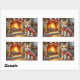 Biewer Terrier Fireplace with Christmas Lights Rectangular Sticker