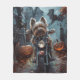 Biewer Terrier Riding Motorcycle Halloween Scary Fleece Blanket