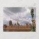 Postcard of the Big Ben, the Houses of Parliament and a typical streetlight in the city of London, the capital of the United Kingdom.