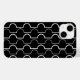 This phone case has an art deco design of white half circles connect with lines on a field of black.