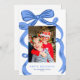 Big Bold Bright Blue Bow Christmas Photo Holiday Card