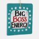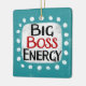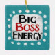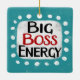 "Big Boss Energy" is a cute text design in blue with black and red text, along with a white accent shape and white textured whimsical dots surrounding it.