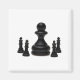 Big black chess pawn surrounded by four little chess kings isolated against the white background. Taking bigness for greatness.