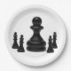 Big black chess pawn surrounded by four little chess kings isolated against the white background. Taking bigness for greatness.