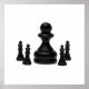 Big Boss. Big black chess pawn surrounded by four little chess kings isolated against the white background. Taking bigness for greatness.