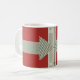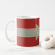 A bold geometrical striped large bow running around a mug as if gift wrapping it, with customizable text forms a perfectholiday gift.