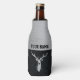 This manly beer cooler design will make a great gift for the deer hunter in your life. The design features a diamond plate background, silver top, and a big antlered buck. Add any name of your choice and enjoy!