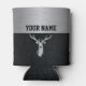 This manly beer cooler design will make a great gift for the deer hunter in your life. The design features a diamond plate background, silver top, and a big antlered buck. Add any name of your choice and enjoy!