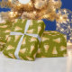 An adorable swiss cheese wedge Christmas tree flashing a big cheesin' smile.