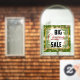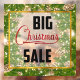 Boost your holiday sale with this beautiful "Big Christmas Sale" shop window cling featuring green fir braches, pinecone and sparkling stars.