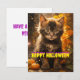 Big City Halloween Kitty Holiday Card sends your family and friends spookiest Happy Halloween Wishes. For cat moms and cat dads and all animal lovers. Cool seventiest retro illustration style. Halloween is the most wonderful time of the year.