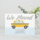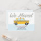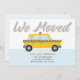 This moving announcement card features an iconic yellow taxi, synonymous with bustling city life, hinting at a relocation to an urban environment. The playful design pairs a cool palette with the vibrant yellow of the taxi, capturing the excitement and movement of city living. It's an upbeat way to share the news of a new urban adventure, with a design that's both fun and indicative of the vibrant city culture.