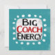 "Big Coach Energy" is a cute text design in blue with black and red text, along with a white accent shape and white textured whimsical dots surrounding it.
