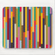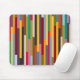 This mouse pad has a geometric design of colourful stripes running vertically.