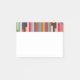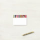 This Post-It notepad has a geometric design of colourful stripes running vertically.