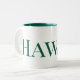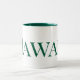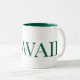 This is a large white coffee cup with a green inside and the word Hawaii written on it in green. It is a very beautiful and elegant city