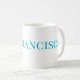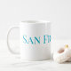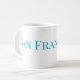 This is a large white coffee cup with the word San Francisco written on it