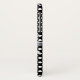 Cute black and white polka dot iPhone X case, with graphics of a big white and yellow daisy peeking over the left side of the case. Customise this pretty case to add any text you want.
