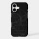 This phone case features an oversized line art drawing of tulips in dark grey on a black background with a personalized name. Original art from Dogwood & Thistle.